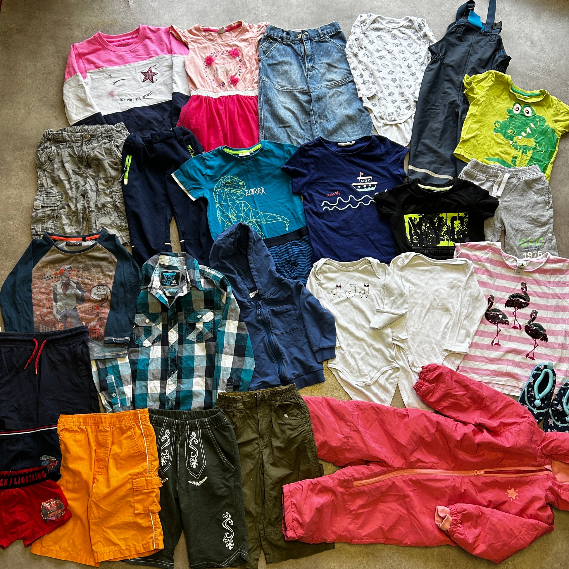 A Gyerek MIX (134 cm-IG) – 25 KG csomag kiváló választás minden turinak és viszonteladónak, akik a kisebb korosztály számára keresnek minőségi, jól eladható gyerekruhát. A mixben újszülött–134 cm közötti méretek találhatók, így széles skálát fed le a babaruháktól egészen a kisgyermek méretekig.