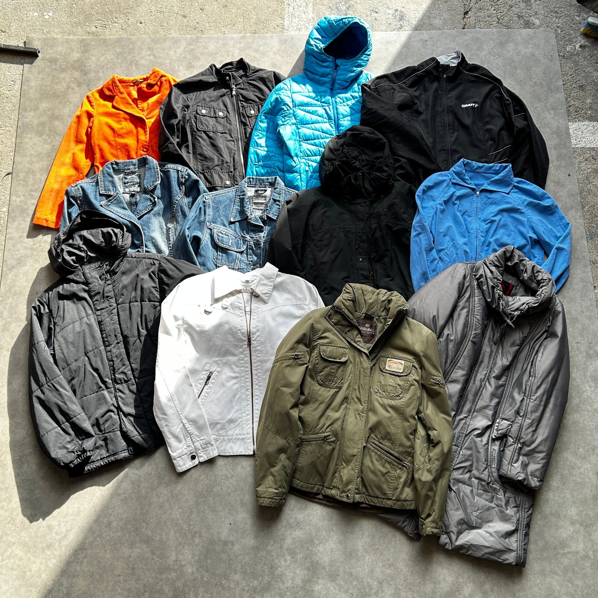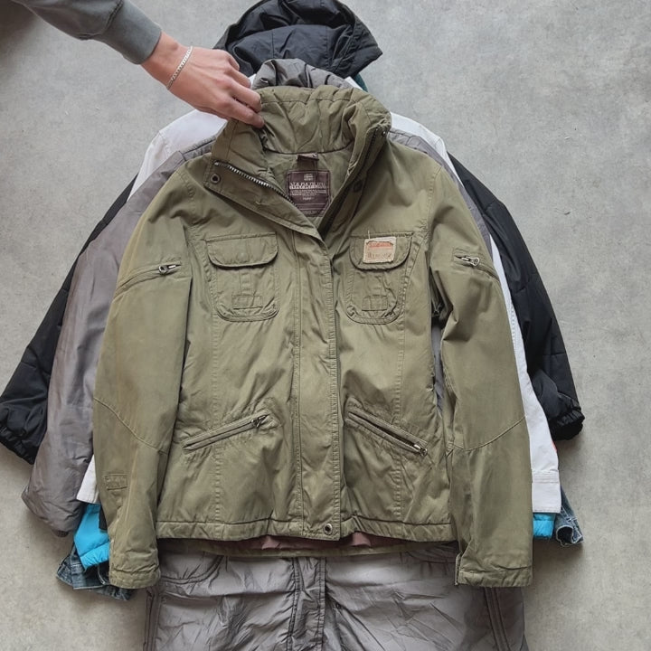 A csomag stílusos mixet tartalmazhat: farmerdzseki, bomber, puffer, télikabát, átmeneti dzseki stb. Fazonra és trendiségre kifejezetten erős válogatás — resell szempontból gyorsan forgó, keresett termékek.