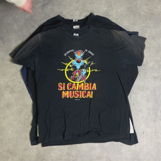 Tematikus válogatás printed és vintage stílusú férfi pólókból, vegyes minőségi arányban (A–C kategória).